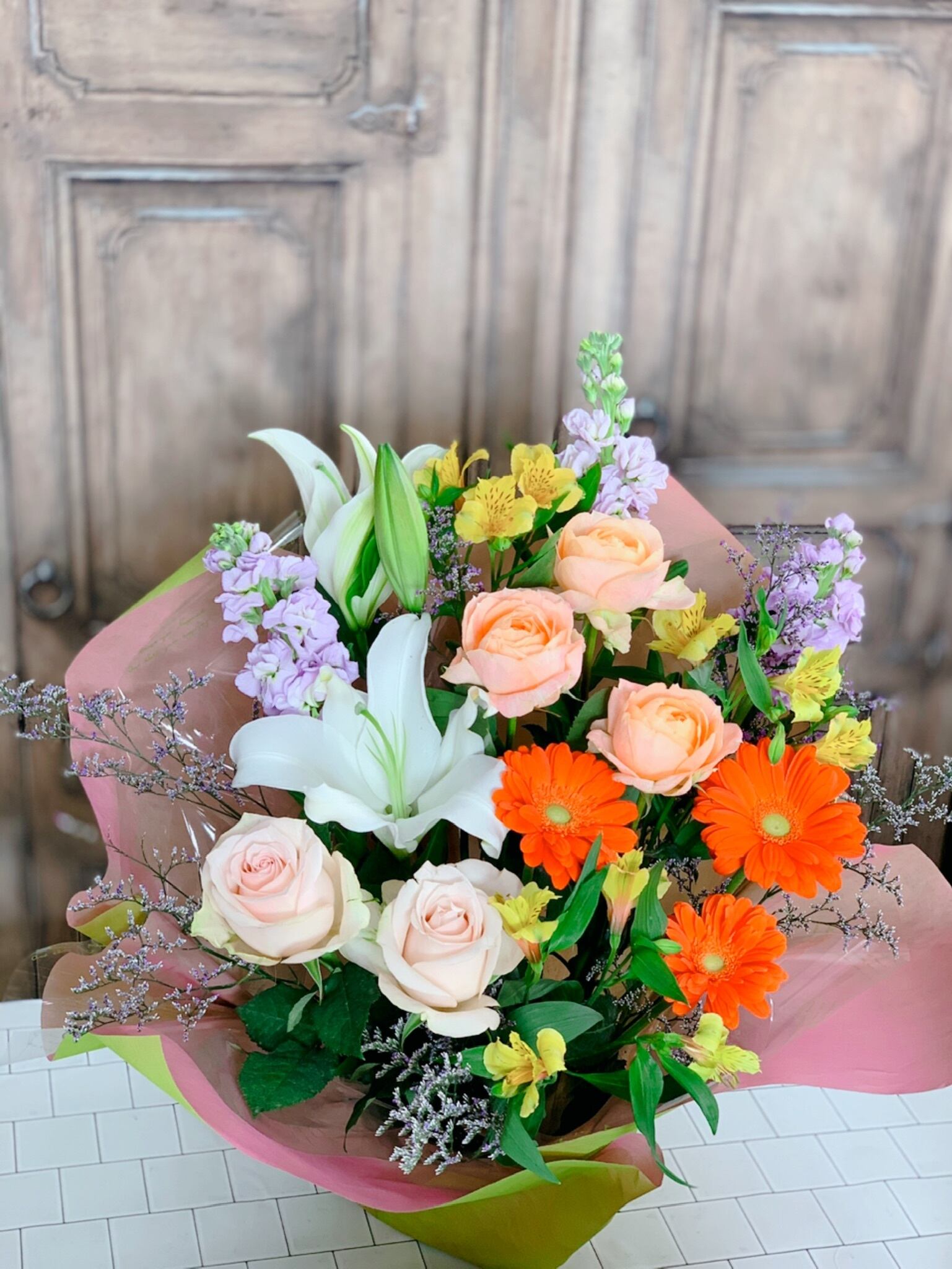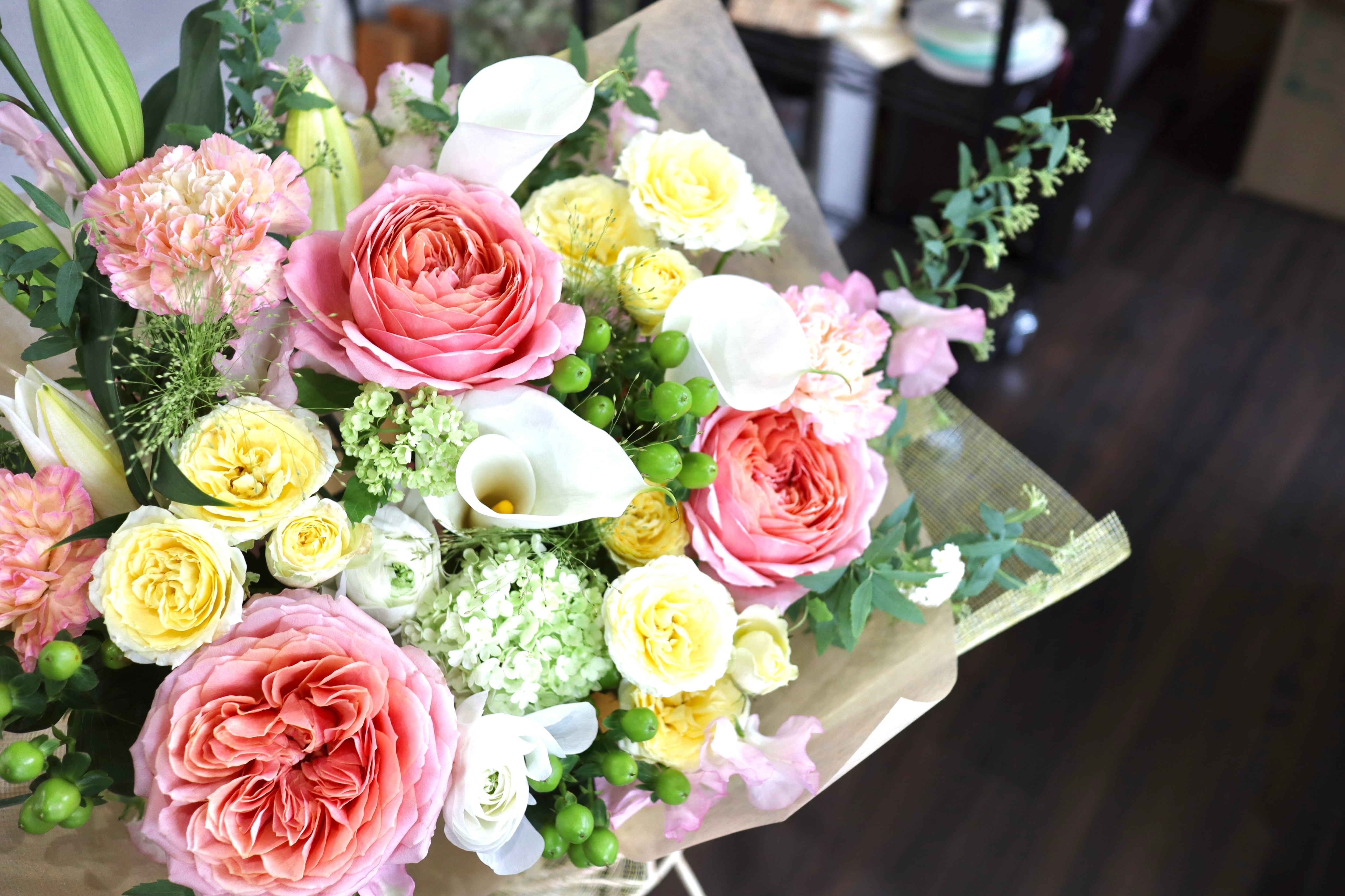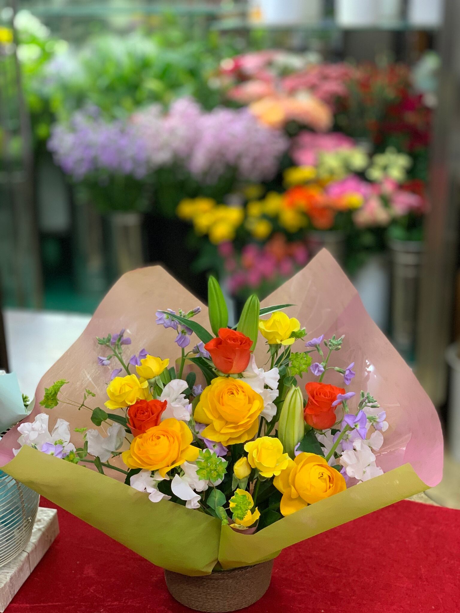 入荷したての季節のお花を母の風にアレンジしてお届けいたします