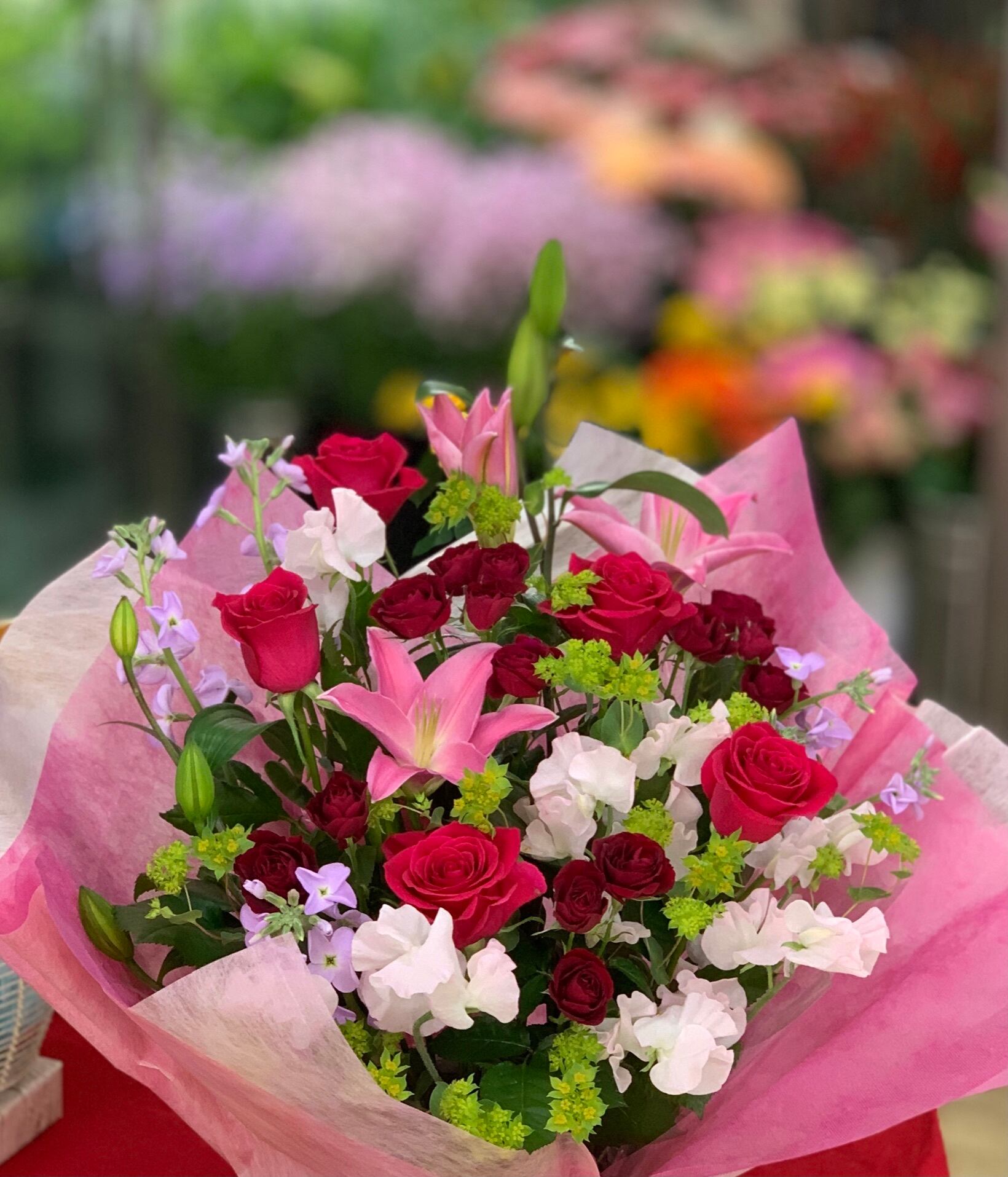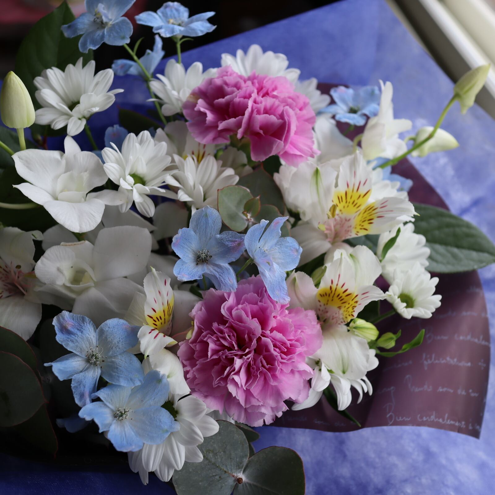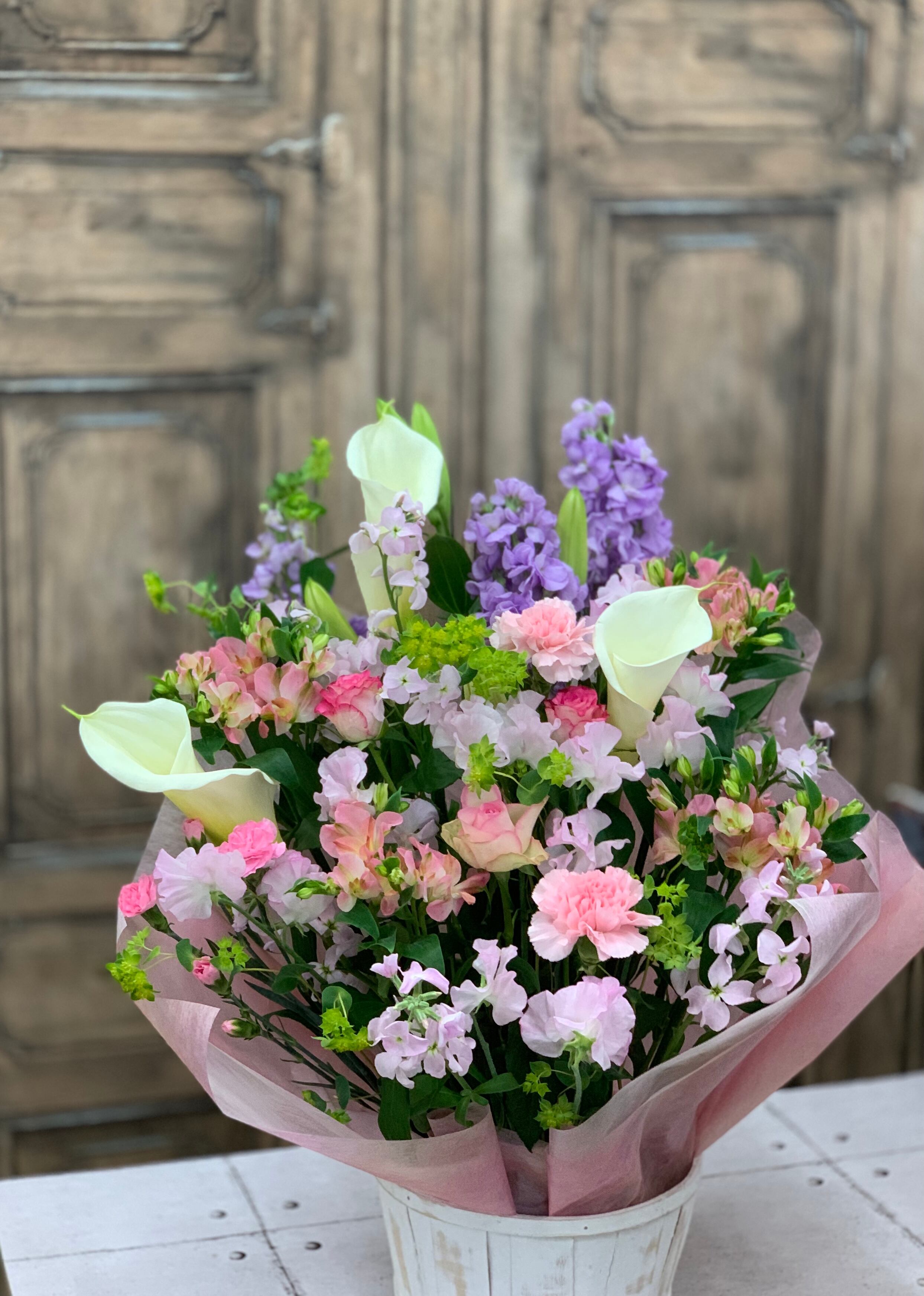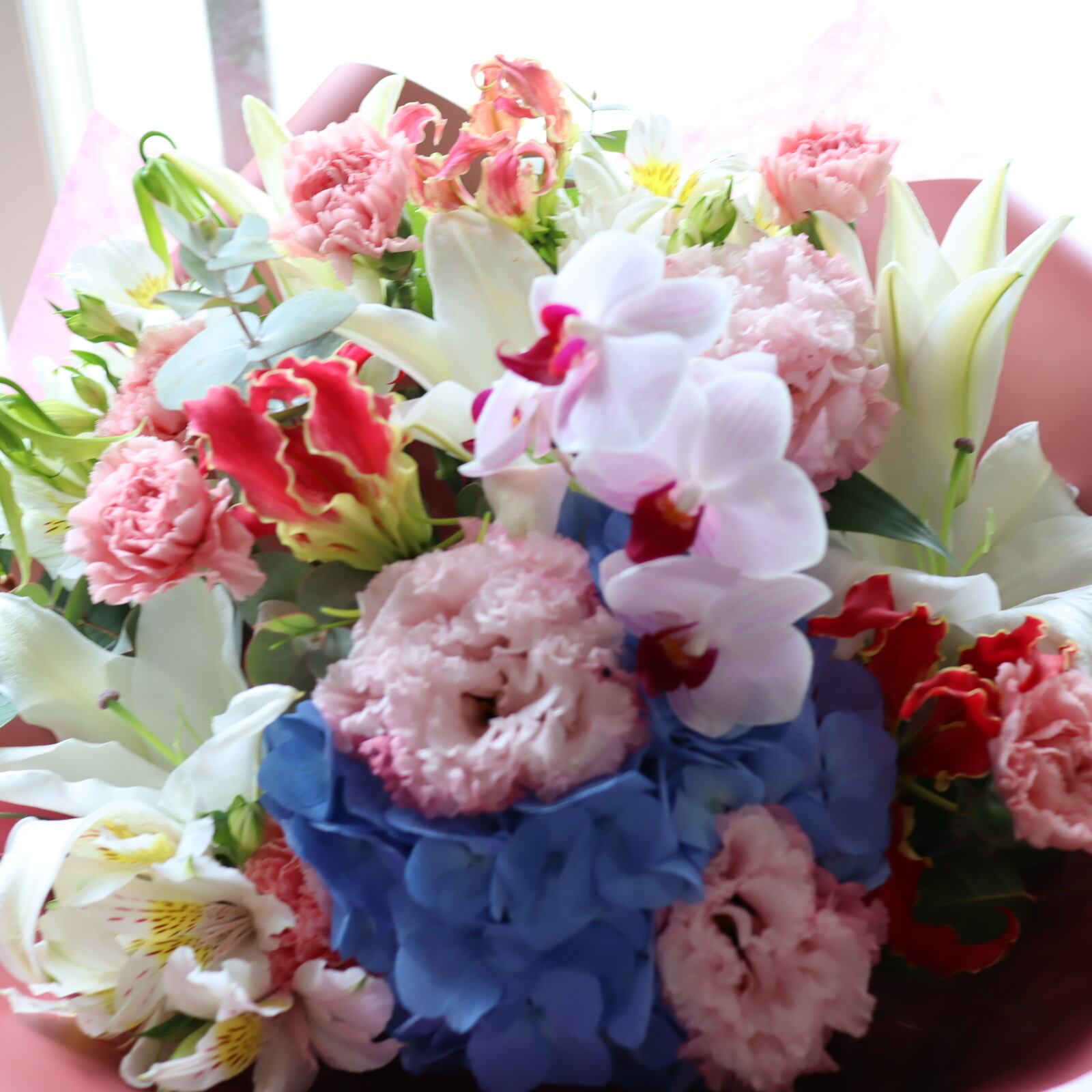 入荷したての季節のお花を母の風にアレンジしてお届けいたします